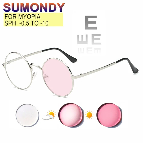 Gafas graduadas para miopía-0,5 to -10, montura redonda de aleación, gafas para miopía, fotocromáticas, antirayos azules, UF29 | Aliexpress