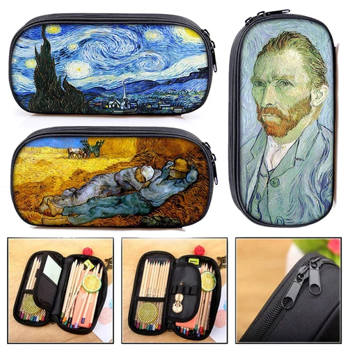 Estuche de lápices de pintura nocturna estrellada de Van Gogh para mujer, bolsas de papelería de pintura al óleo clásicas, caja de lápices, suministros escolares | Aliexpress