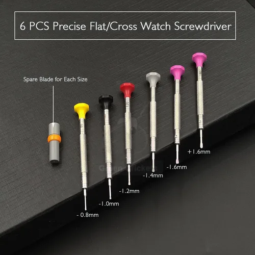 Kit de herramientas de destornillador de reloj preciso, juego de destornilladores cruzados planos de acero inoxidable con hoja de repuesto para relojero GC005, 6 uds. | Aliexpress