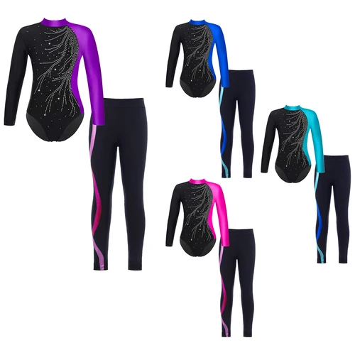 Leotardo adornado con diamantes de imitación brillantes de manga larga para baile de Ballet para niñas con pantalones Legging para gimnasia patinaje sobre hielo nuevo | Aliexpress