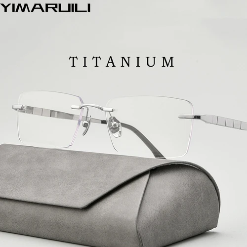 YIMARUILI, nuevas gafas cuadradas ultraligeras de negocios, gafas sin montura graduadas ópticas de titanio puro Retro a la moda para hombres F91092T | Aliexpress