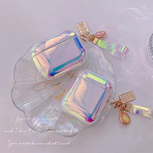 Bonita caja de auriculares con gradiente láser de ensueño para Apple AirPods Pro 2, funda suave de TPU para auriculares para AirPods 1/2/3, funda con llavero | Aliexpress