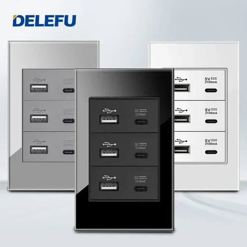DELEFU 4*2 negro blanco gris Panel de vidrio templado completo todas las carga tpye-c enchufe de pared USB 118*74mm 2.1A 5V toma USB | Aliexpress