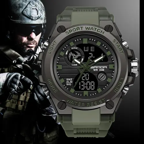 SANDA-Pulsera deportiva para hombres, reloj de lujo masculino resistente al agua, de doble pantalla y estilo militar | Aliexpress