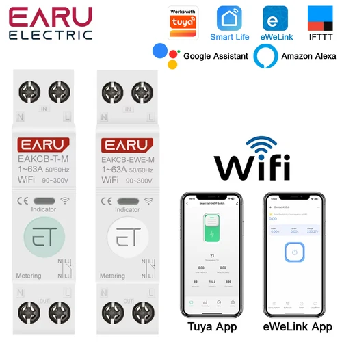 Tuya eWeLink WiFi disyuntor inteligente 1P + N 63A MCB interruptor de relé de tiempo medidor de energía kWh Protector de corriente de voltaje Control remoto | Aliexpress