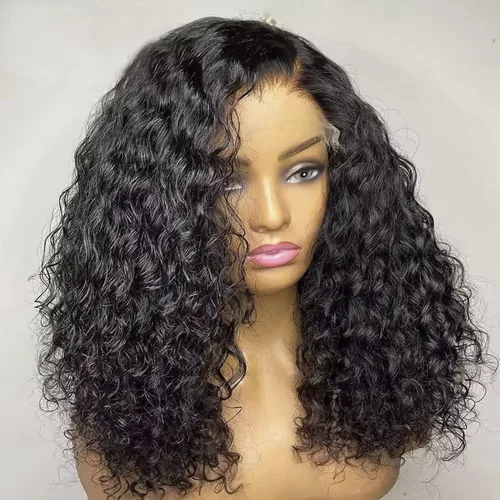 Pelucas delanteras de encaje ondulado con agua para mujer, peluca Bob con cierre brasileño, pelucas cortas frontales de encaje transparente 13x4, cabello humano prearrancado | Aliexpress