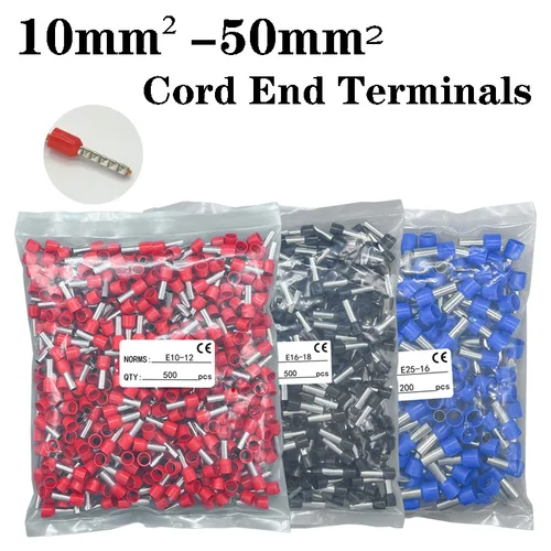 100-500 Uds terminales tubulares de cobre puro terminales de extremo de cable aislados E10-12 16-12 25-16 35-16 50-25 conectores de cable eléctrico | Aliexpress