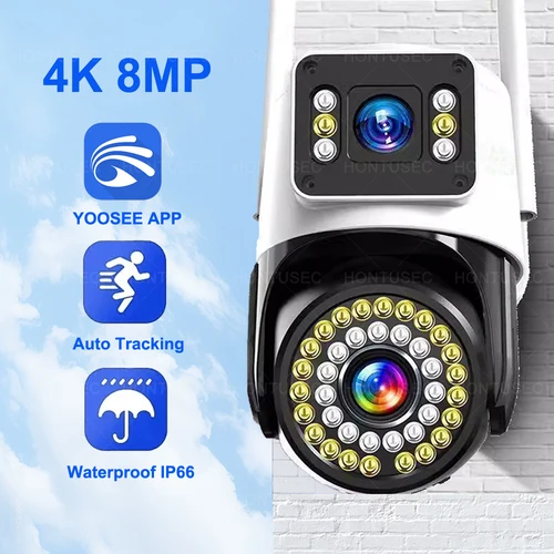 YOOSEE 4K 8MP cámara WIFI de doble lente 2K 4MP cámara PTZ de doble pantalla impermeable al aire libre Audio bidireccional cámara inalámbrica de seguridad | Aliexpress