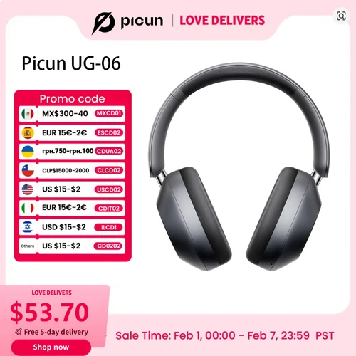 Picun F6 auriculares inalámbricos con cancelación activa de ruido seguimiento de cabeza Audio 3D 40mm auriculares Bluetooth ANC de alta resolución Control por aplicación HIFI | Aliexpress