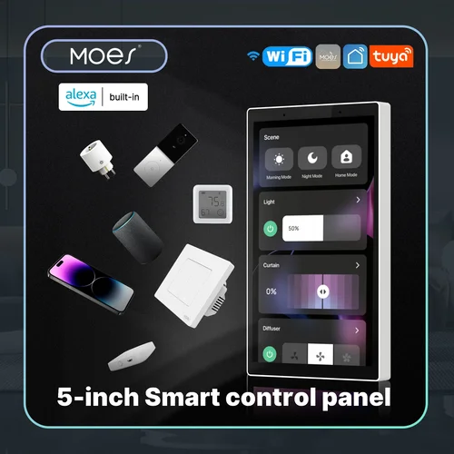 MOES Tuya Wifi pantalla táctil inteligente de 5 pulgadas Panel de Control central de EE. UU. Control por voz Alexa y ZigBee Gateway Control de escena incorporado | Aliexpress