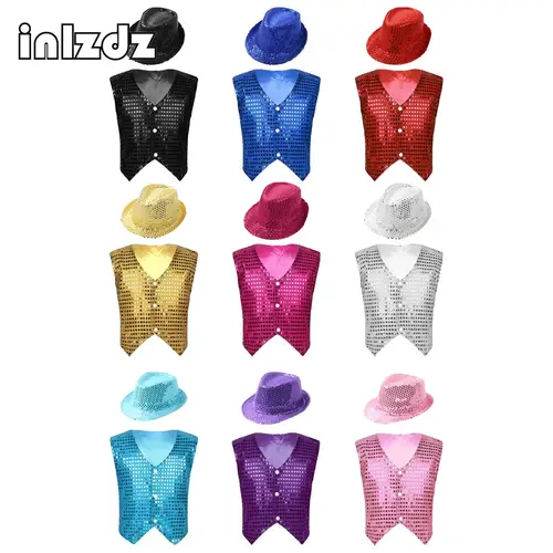 Traje de baile de Jazz moderno con lentejuelas para niñas y niños, chaleco de baile callejero de Hip hop para niños, chaleco con sombrero, trajes para actuación, Ropa de baile | Aliexpress