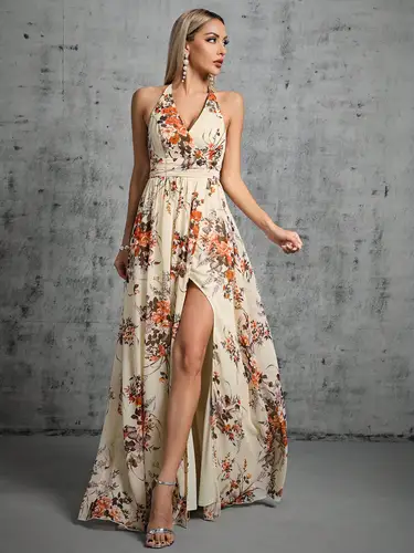 Mgiacy vestido de noche con escote en V profundo y tirantes en la espalda, vestido dividido halter, vestido de baile, vestido de fiesta, vestido de dama de honor | Aliexpress