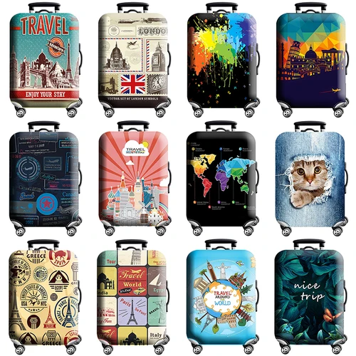Funda protectora gruesa elástica para equipaje con mapa del mundo, traje con cremallera para bolsa de 18-32 pulgadas, fundas para maleta, cubierta para carrito, accesorios de viaje | Aliexpress