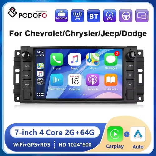 Podofo 2din 7 ""Radio estéreo de coche Android para Chevrolet Chrysler Jeep Dodge 2 + 64G Carplay Android navegación GPS automática Bluetooth | Aliexpress