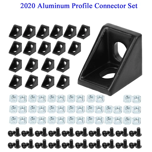 Juego de conectores de perfil de aluminio 100 Uds 2020: 20 piezas soporte de esquina + 40 tuercas con ranura en T M5 serie 20 + 40 Uds. Tapa de enchufe hexagonal M5x8mm | Aliexpress