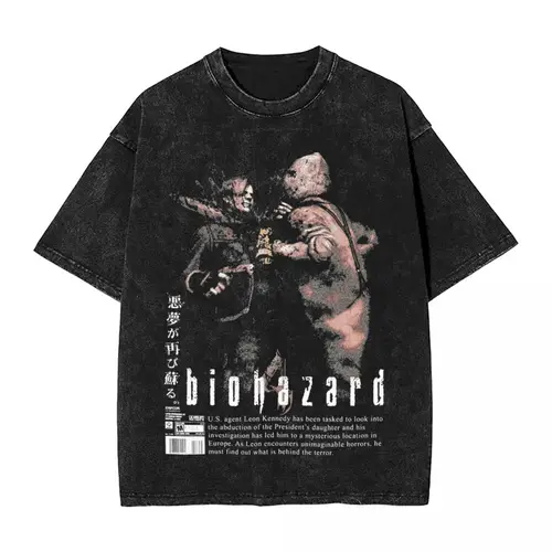 Camiseta lavada Residents Evils 4 RE4 The Chainsaw, camisetas Vintage de algodón para hombre, camisetas Hipster con cuello redondo de verano, camisetas estampadas de gran tamaño | Aliexpress