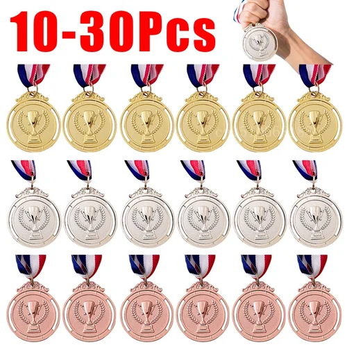 10-30xMedalla de premio de bronce dorado y plateado de recompensa ganadora con cinta para el cuello Medalla de primer y segundo y 3.o premio para competición deportiva para niños | Aliexpress