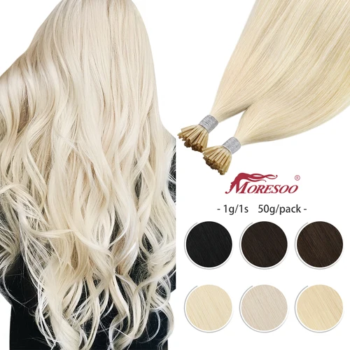 Moresoo-extensiones de cabello humano Real, pelo Remy liso con punta de queratina, máquina de Color sólido, Itip, 0,8g/1s | Aliexpress