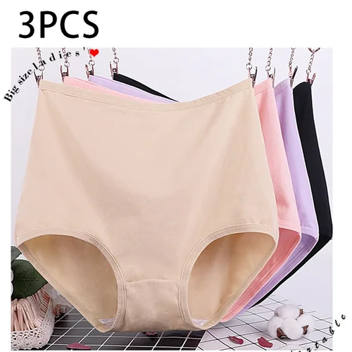 Bragas de algodón para mujer, ropa interior de talla grande, bragas de cintura alta, lencería femenina transpirable de Color sólido, 3 uds. | Aliexpress