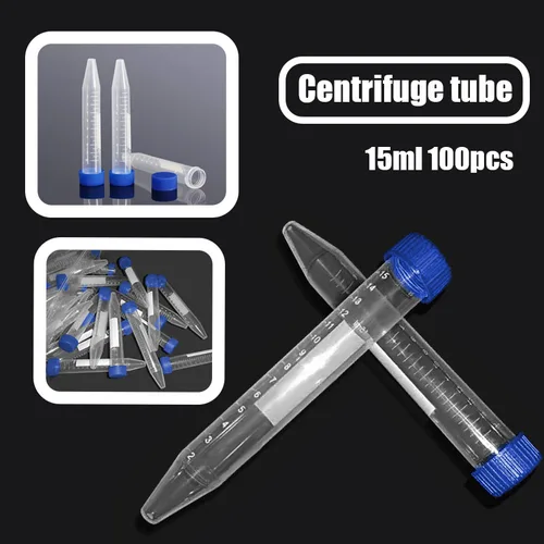 Tubos de centrífuga cónicos científicos, 15ML, 100 Uds., tubo de ensayo de plástico con tapas de rosca, tubos de ensayo estériles de 15ML con tapas | Aliexpress