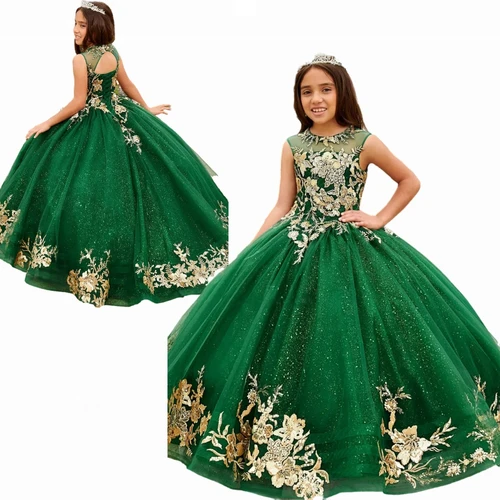 Vestido de flores para niñas, vestidos de novia con estampado dorado de Color elegante, vestidos de desfile de princesa, vestidos de fiesta de baile hinchado, vestidos de primera comunión | Aliexpress