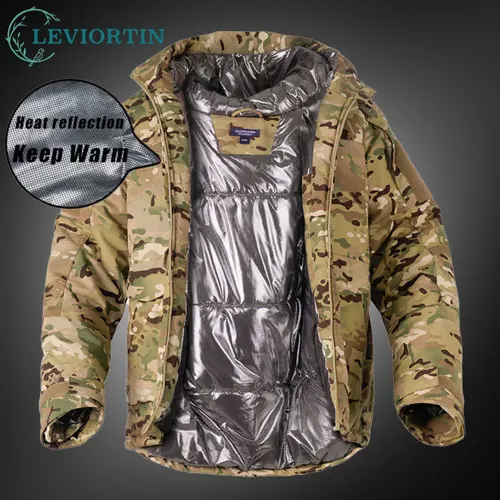 Chaqueta táctica reflectante térmica de camuflaje para exteriores para hombre, abrigos acolchados con capucha de camuflaje con múltiples bolsillos, duraderos y resistentes al calor | Aliexpress