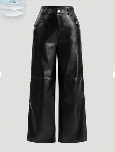 Pantalones europeos y americanos de cuero sintético de alta gama PU direccional de color sólido para vacaciones elegantes e informales para mujer | Aliexpress