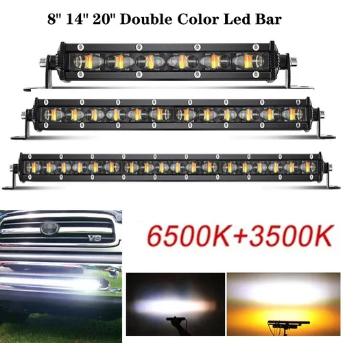 8 ""14"" 20 ""barra Led de doble Color luces de trabajo lámpara antiniebla todoterreno camión 12V 24V estroboscópico blanco amarillo barras de luz de dos colores para ATV SUV | Aliexpress