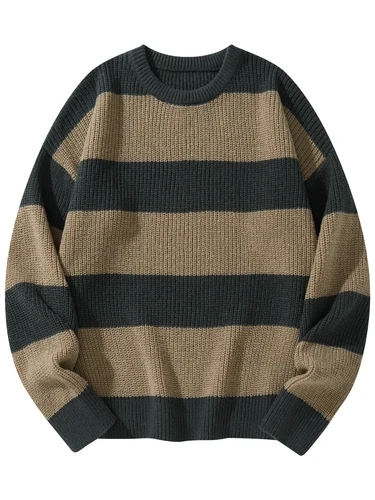 Nuevo Suéter de fondo suelto, jersey informal versátil a rayas, suéter de cuello redondo para hombre | Aliexpress