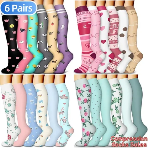 6 pares de nuevas medias de compresión 20-30Mmhg hasta la rodilla calcetines deportivos aptos para venas varicosas médicas Edema para embarazadas circulación de la Diabetes | Aliexpress