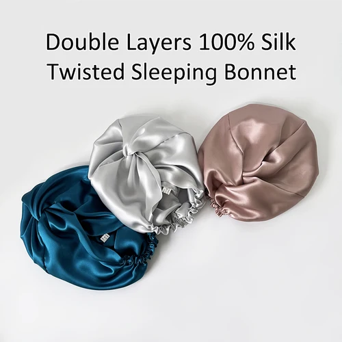 Gorro para dormir trenzado de seda 100% de doble capa, turbante de seda Natural con cinta elástica, diadema para mujer para el cuidado del cabello, 19Momme | Aliexpress