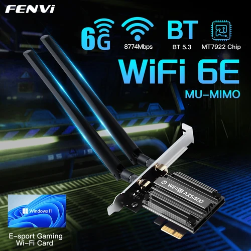 Adaptador Inalámbrico Fenvi 5374Mbps WiFi 6E PCIe, Bluetooth 5.3, Tarjeta de Red Tribanda 6G/5G/2.4G, MT7922 WiFi6 802.11ax para PC | Aliexpress