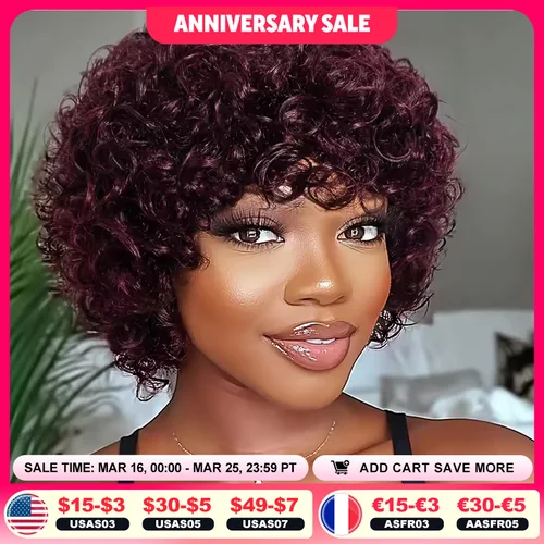Debut-pelucas rizadas Afro de Pixie corto para mujeres negras, peluca Bob marrón Natural sin pegamento con flequillo, pelucas de cabello humano brasileño | Aliexpress