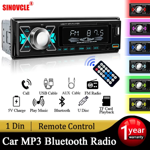 Reproductor MP3 estéreo de Audio para coche, 1 din, Bluetooth, estéreo Digital Multimedia para coche, Universal, colorido, con entrada auxiliar USB | Aliexpress