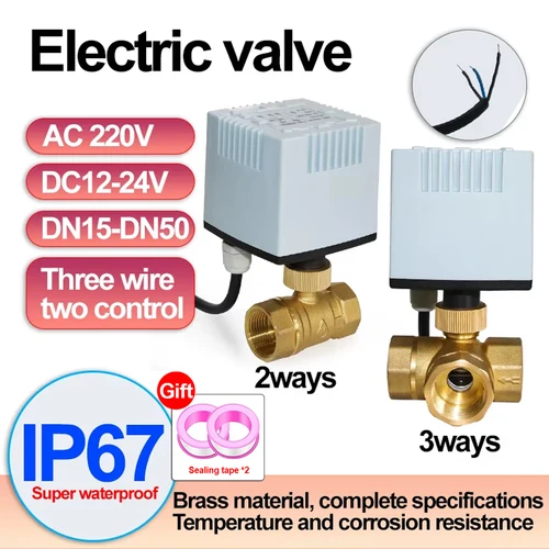 Válvula de bola eléctrica de latón DC12V-24V o AC220V con actuador eléctrico, válvula de bola de 2 controls de 3 cables DN15 ~ DN50, IP67 3 vías/2 vías | Aliexpress