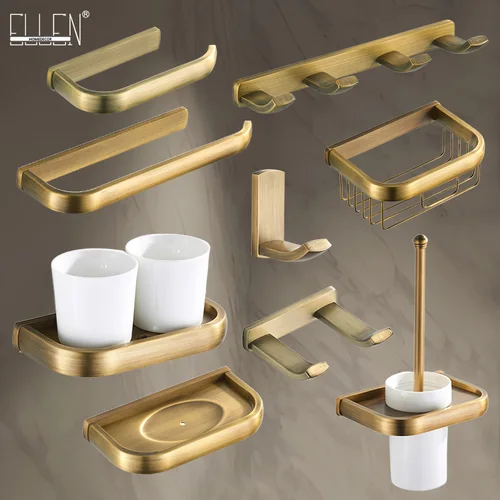 Toallero montado en la pared Chapado en latón antiguo, juego colgante de accesorios para el baño, soporte para pañuelos, perchero, taza para enjuague bucal ELA85A | Aliexpress
