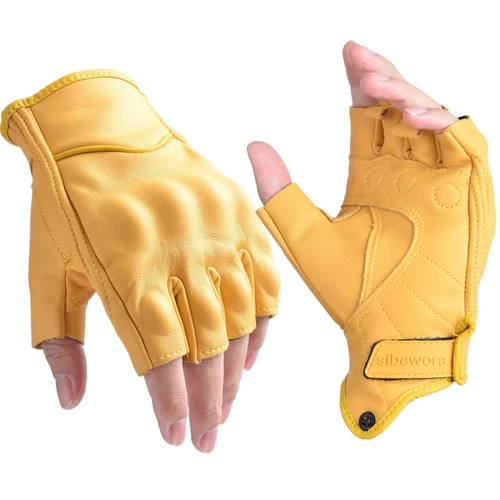 Guantes al aire libre Guantes de motocicleta Guantes de cuero para montar en motor Medio dedo para hombres Guantes sin dedos Amarillo | Aliexpress