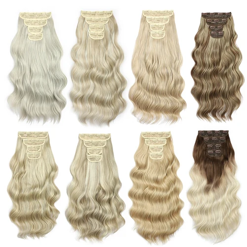 Extensiones de cabello con Clip rubio, mechones de cabello con Clip ondulado, 22 pulgadas, 4 unids/lote, pelo sintético Natural suave resistente al calor | Aliexpress