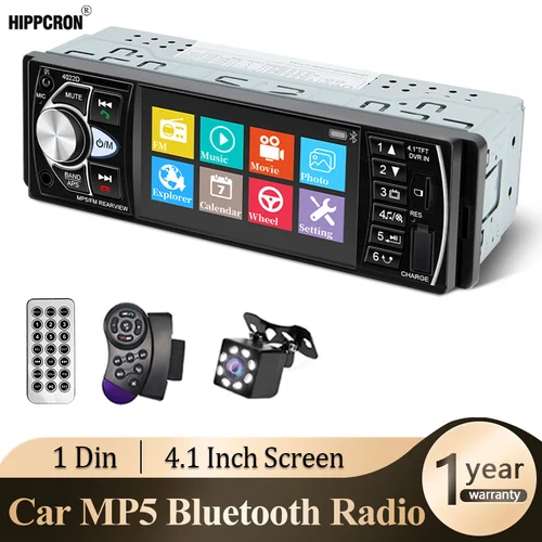 Hippcron Car Radio 1 Din Autoradio 4022D Bluetooth 4,1 ""Pantalla Soporte Cámara de Vista Trasera Control del Volante | Aliexpress