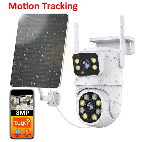 Tuya Smart 4MP + 4MP 8MP batería de doble lente Solar WiFi pantalla Dual seguimiento de movimiento humano cámara de vigilancia de seguridad al aire libre FHD | Aliexpress