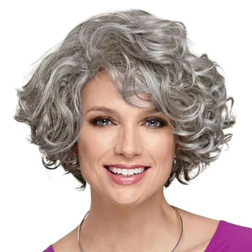 Pelucas rizadas cortas para mujer, pelo sintético, peluca gris con flequillo lateral, pelucas grises de Color degradado para mujer, disfraz de fiesta, Cosplay | Aliexpress