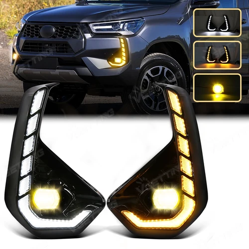 LED DRL para Toyota Hilux Revo 2024 2025 luces de circulación diurna luces antiniebla de señal de giro luces diurnas de parachoques delantero blanco amarillo 12V | Aliexpress