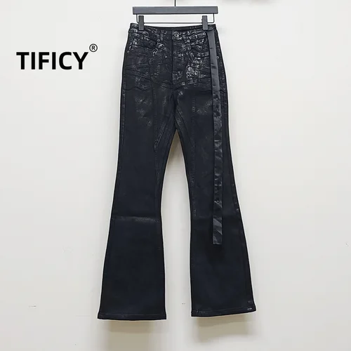 Pantalones de cera estilo RO para hombre, pantalones vaqueros de alta elasticidad con revestimiento de superficie de cera de pentagrama de cera cepillada hechos a mano, pantalones vaqueros oscuros | Aliexpress