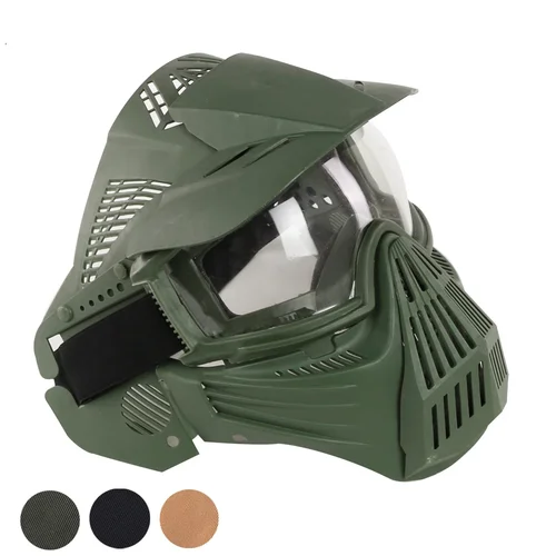 Mascarilla táctica de cara completa con lente, equipo protector de Paintball Airsoft, caza, juego CS, protección facial de combate, resistente a impactos | Aliexpress
