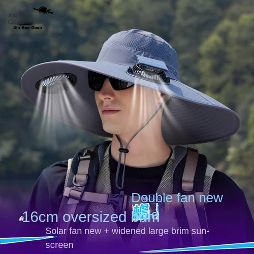 Ventilador solar de ala ancha Sombrero de pesca al aire libre: carga solar y USB, sombrero para el sol al aire libre con ventilador solar con 2 ventiladores solares | Aliexpress