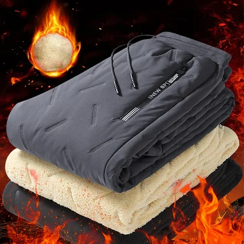 Pantalones de chándal de invierno para hombre, forro polar grueso de felpa, lana de cordero, térmicos, informales, impermeables, a prueba de viento, pantalones de algodón cálidos | Aliexpress