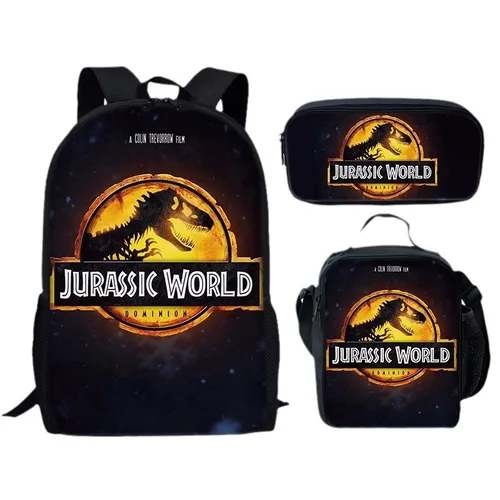 Jurassic World 3 Mochila para estudiantes Mochila de dibujos animados Bolsa para comida Bolsa para bolígrafos Juego de 3 piezas | Aliexpress