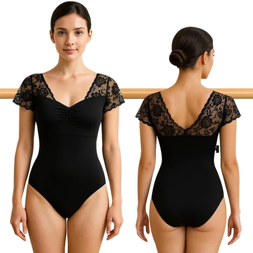 Leotardos de baile de Ballet de manga corta de encaje para mujer, Tops de baile de gimnasia para adultos con cordón, cuello en V y espalda hueca | Aliexpress