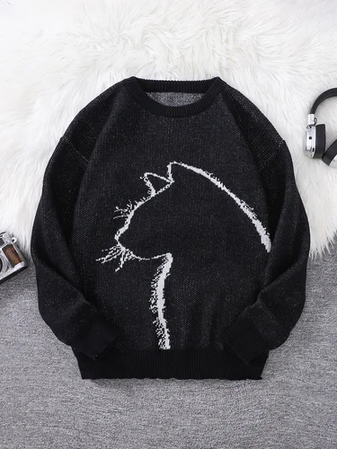 Nuevo Popular Otoño e Invierno Simple gatito Jacquard patrón de doble cara suéter Casual cuello redondo tejido jersey de los hombres | Aliexpress