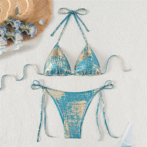 Traje de baño verde brillante Halter String Triangle Micro Bikini Tanga traje de baño Sexy para mujer 2025 traje de baño Mini Bikinis conjuntos | Aliexpress